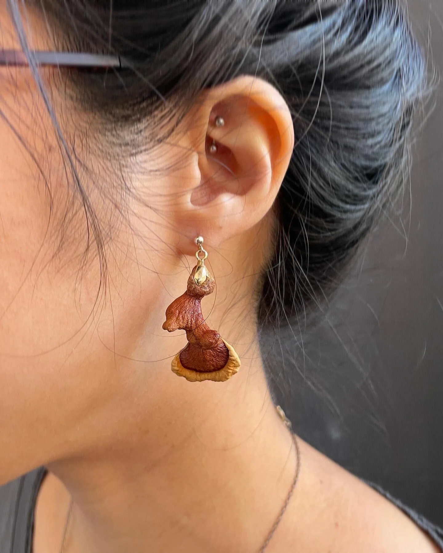 Grown and made by us with mush love. Ganoderma sp. (Singapore) with gold-filled studs.